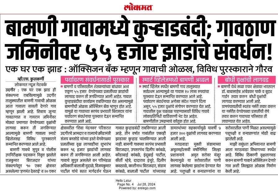 “बामणी पंचायतीने लावलेले 50,000 झाडांचे रोपण पर्यावरणाचे रक्षण करण्याच्या दिशेने एक अद्वितीय पाऊल आहे. बामणी केवळ लातूरसाठीच नव्हे तर संपूर्ण राज्यासाठी एक प्रेरणा बनले आहे.”